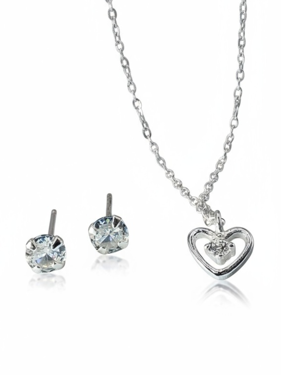 Komplet Kolczyki i Naszyjnik Serce Z Cyrkoniami